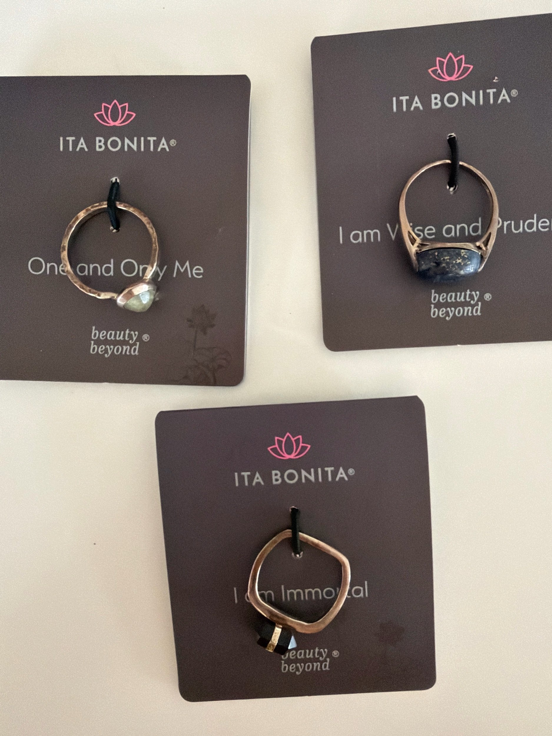 Shop › Ita Bonita Ring (MC) Ita Bonita Ring (MC) $50.50 Stone: One an Only Me - Rainbow Fluorite (size 9) I am Wise and Prudent - Lapis (size 9) Add To Cart Added! You Might Also Like Nina Designs - Sterling Silver Adjustable Fern Ring (R284) $50.50 Ita Bonita I am Free Necklace with Black Spinel Stones (MC) $62.62 Nina Designs - Sterling Silver Infinity Snake Ring (Size 7) (R135) $50.50 Mishakaudi Necklace - Curin $48.00 Luna Norte: Super Nova Earrings- Mystic Ab Clear Quartz (E2664) $35.35